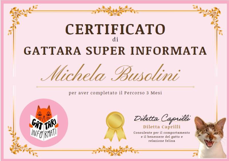 Da settembre a dicembre del 2025 ho avuto modo di capire il comportamento felino seguendo un percorso con la mitica Diletta Caprilli. Anche la parte comportamentale è fondamentale per avere cuccioli sani e socievoli.